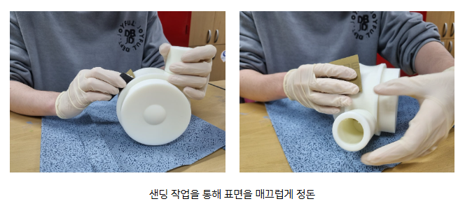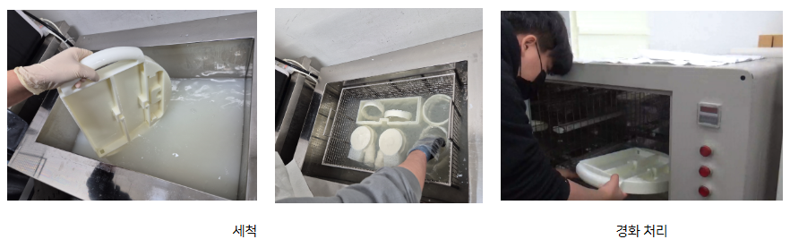 세척으로 남아있는 레진 잔여물을 제거하고, 경화 처리를 통해 내구성과 강도를 높였습니다. 이후 샌딩 작업으로 표면을 매끄럽게 다듬어 완성도를 높였으며,
