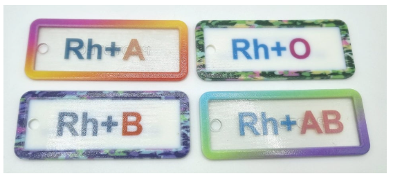 프로토랩은 이런 아이디어를 바탕으로 PolyJet 방식으로 혈액형 키링을 제작해 보았습니다.