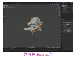 Blender에서 애니메이션이 적용된 모델 중 원하는 자세를 고정해, 피규어 형태로 만들 준비를 했습니다. |