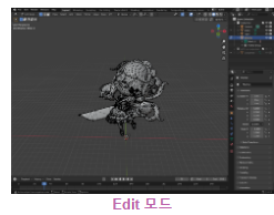Blender의 Edit Mode에서 메시 구조를 확인하며 세부 형상을 점검하고 부족한 부분을 보강했습니다. 특히 원본 모델의 눈·코·입은 단순 텍스처(2D)로 처리되어 있었기 때문에, 이를 실제 입체감을 살릴 수 있도록 솔리드 구조로 변환했습니다. |
