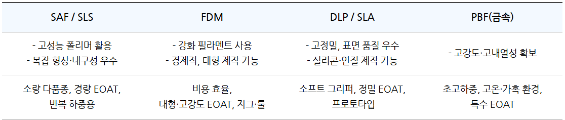 Q 그리퍼 제작이 가능한 3D 프린팅 기술에는 무엇이 있나요?
