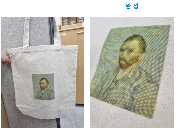이번에는 고흐의 자화상을 에코백 원단 위에 3D 프린팅으로 제작했습니다.