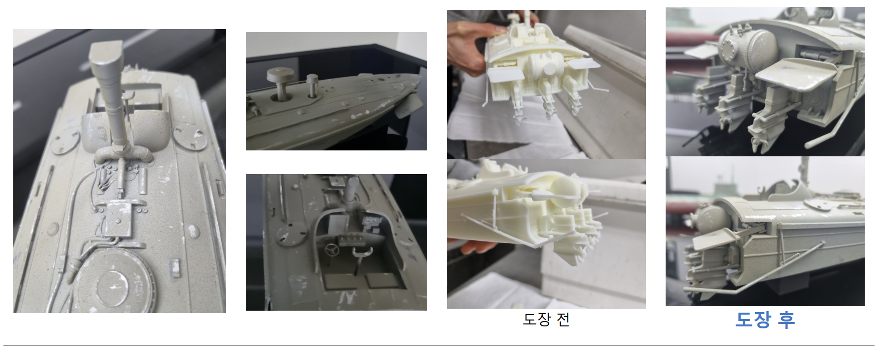 후처리와 도장까지 마무리된 결과물은 전시 목적에 맞게 실물과 유사한 외관으로 완성되었습니다.