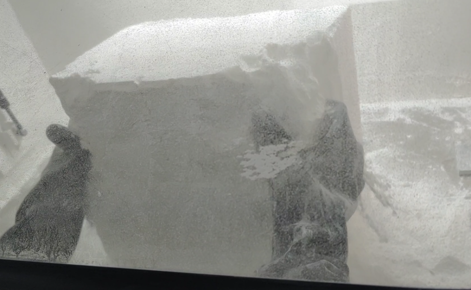 이 파우더 덩어리 속에 라티스 구조의 탁구공들이 숨어 있습니다.